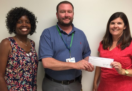 - Thank you to Walmart Giving for giving us a $500 grant! Frankie Sheldon, Manager of Walmart Main in Wilson, presented the check to Louise McKinnon. The support of our business community continues to make our weekend feeding program possible.
